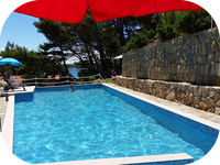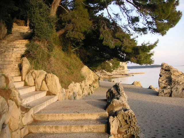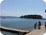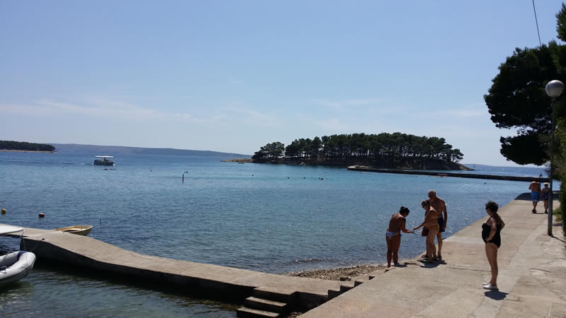 U neposrednoj bilizini (cca. 50 m) možete birati želite li se kupati na platou, pješčanoj ili šljunčanoj plaži, ili se možete neometano sunčati na obližnjem otočiću do kojeg stižete stazom koja ga spaja s našom uvalom.